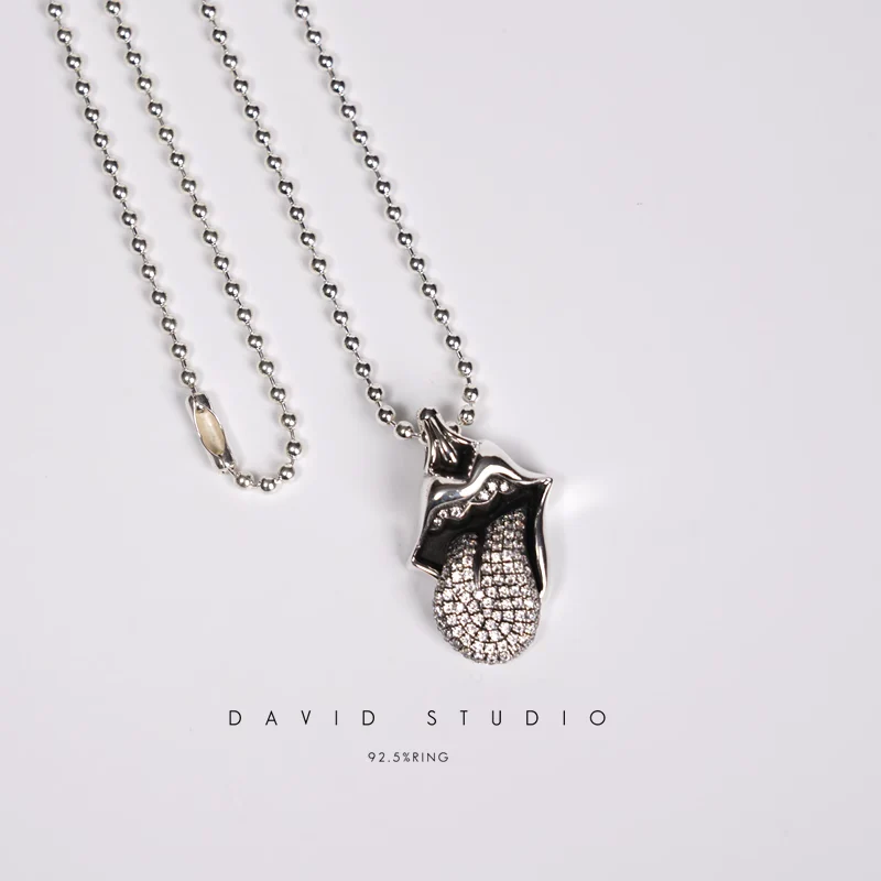 ROLLING STONES TONGUE & LIP PENDANT WITH DIAMOND – BALL CHAIN
