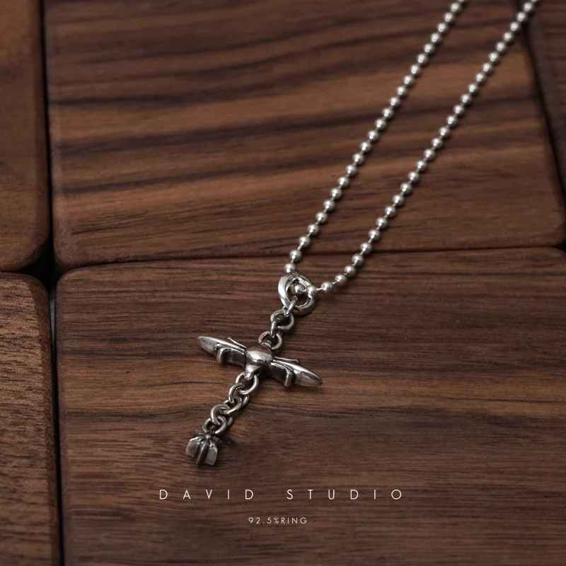 SMALL DOUBLE CROSS PENDANT – BALL CHAIN