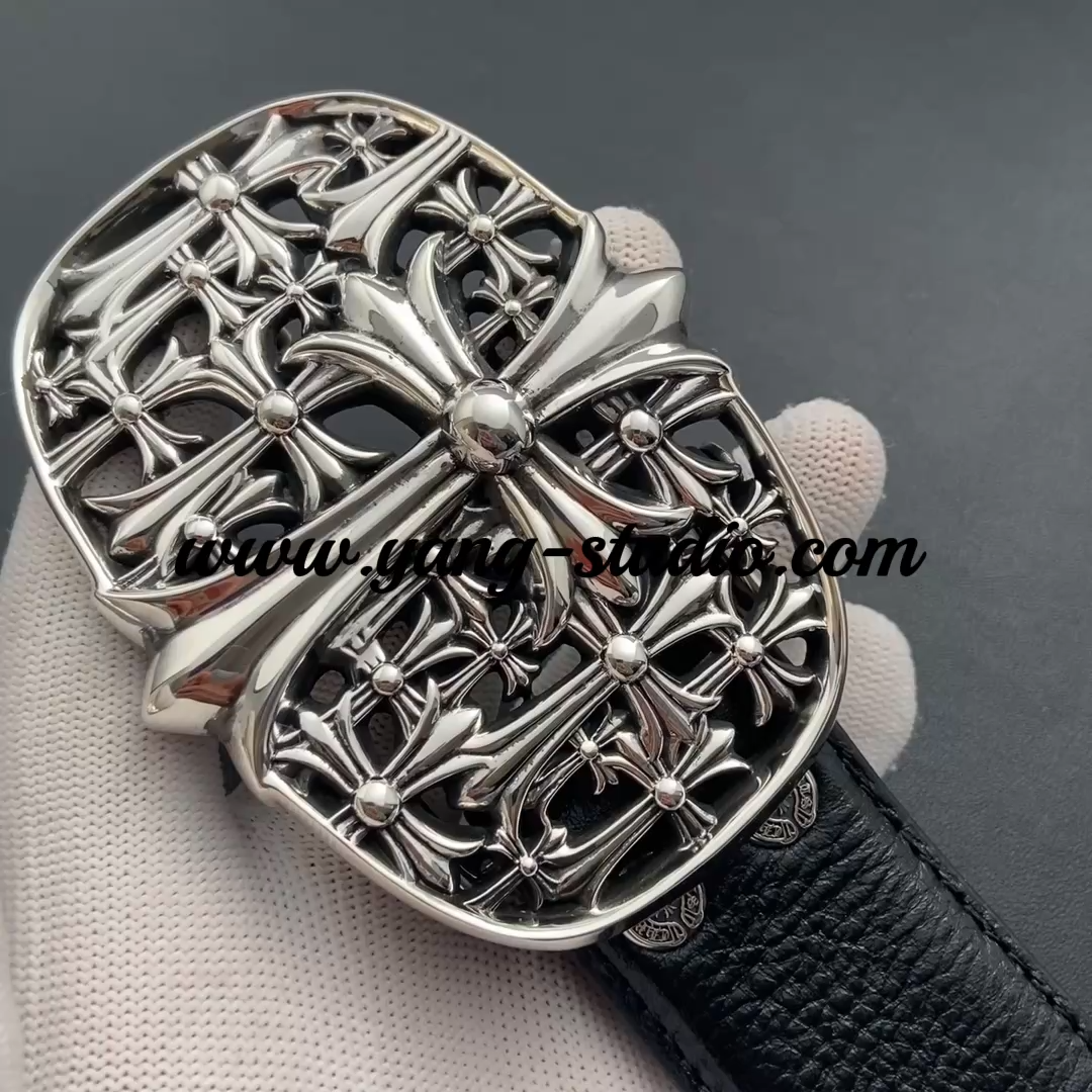 CEMETERY CROSS BUCKLE COWHIDE LEATHER BELT